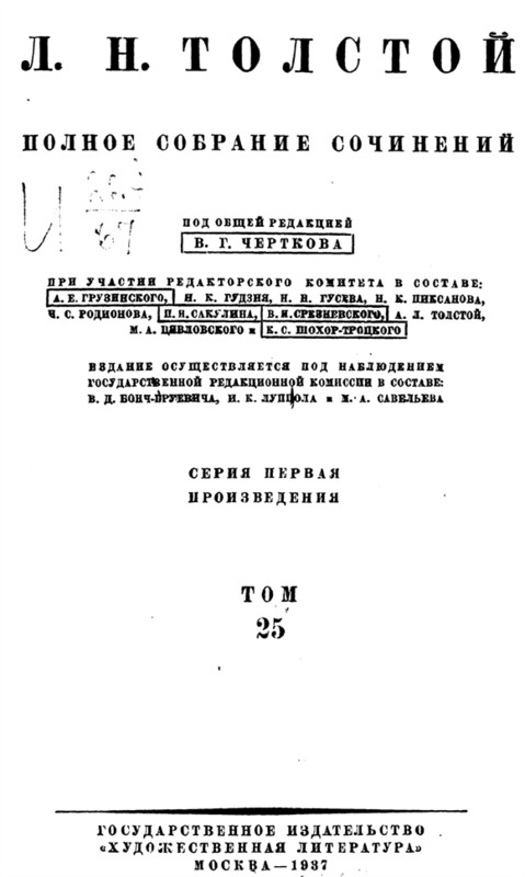 Полного собрания сочинений Л. Н. Толстого, предоставленной