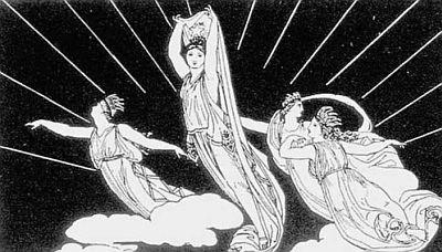Эос и ее дочери-звезды. Иллюстрация к «Гомеровским поэмам» (1885 г.).