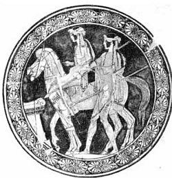 Диоскуры. Фрагмент росписи краснофигурного килика (ок. 450 г. до н. э.).