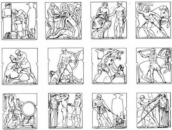 Двенадцать подвигов Геракла. Греческие рисунки.