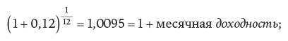 Эта операция также может быть использована для расчета доходности с учетом сложного процента (компаундированной доходности) на периодах, длина которых составляет менее года. С помощью формулы, данной выше, рассчитайте, какова будет ежемесячная доходность с учетом сложного процента, если годовая доходность равна 12%? Подсказка: один месяц — это 1⁄12 года.