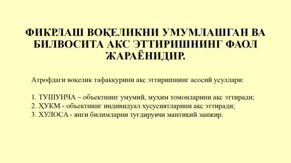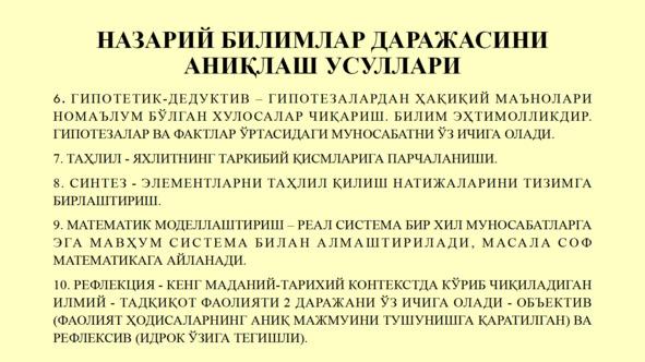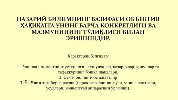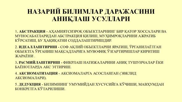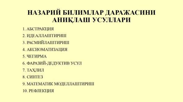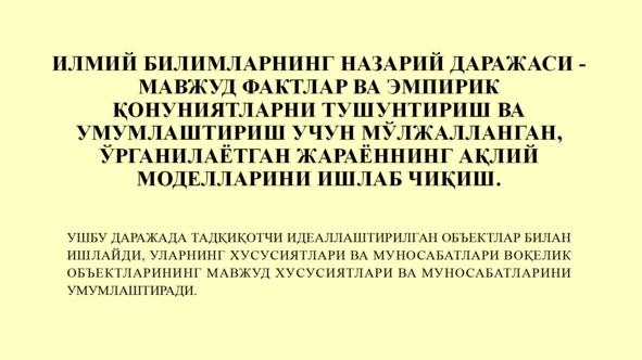 Иккинчидан, фан бу фаолиятнинг натижаси — тизим сифатида намоён бўлади илмий билим олди.