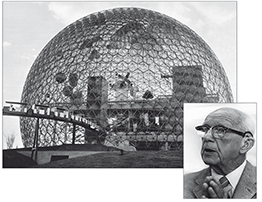 Выше на фотографии павильон США в форме геодезического купола Фуллера на Всемирной выставке «Экспо-67» в Монреале.