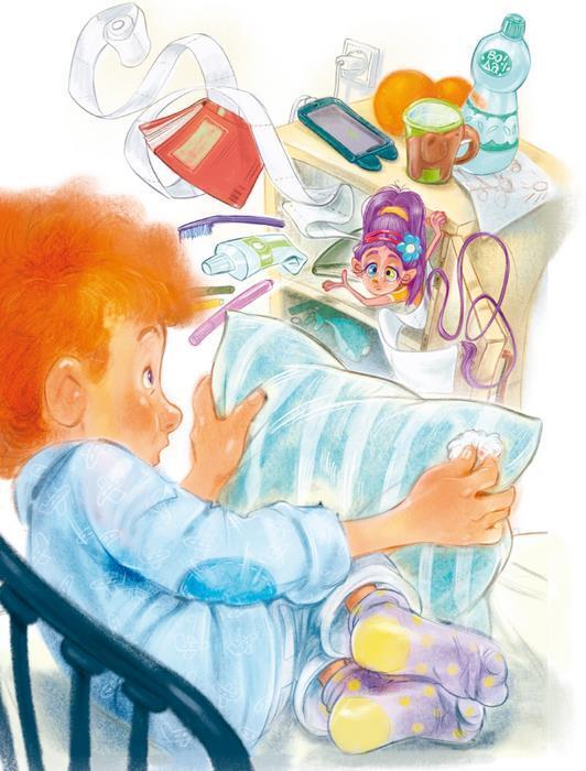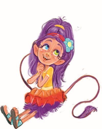Ваня вскочил, выставил подушку, как щит, а из вороха вещей вылезло существо с фиолетовой шерстью и длинным хвостом. На Ваню посмотрели круглые глаза – зелёный и голубой. Ваня застыл, а зверёк пушистыми лапками аккуратно снял с шерсти ниточку. Ваня понял, что это девочка, – на ней было короткое кукольное платье, а на голове блестела заколка в виде цветка.