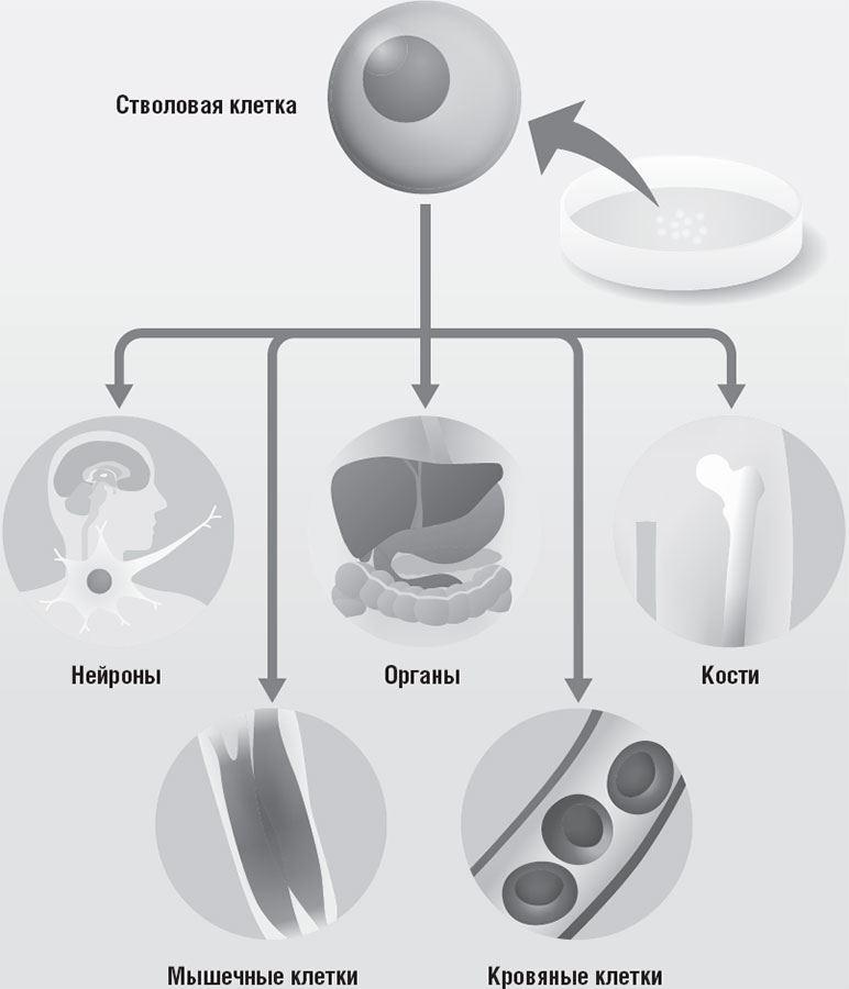 Как известно, человеческий организм развивается из одной клетки под руководством ДНК. На ранних этапах развития все клетки зародыша одинаковы, из каждой может развиться любой орган или любая ткань. Позже клетки начинают делиться по специальностям: из этой группы образуется сердечнососудистая система, эта станет скелетом, та – пищеварительным трактом. Ненужные участки ДНК отключаются, работать продолжают только те, что будут задействованы.