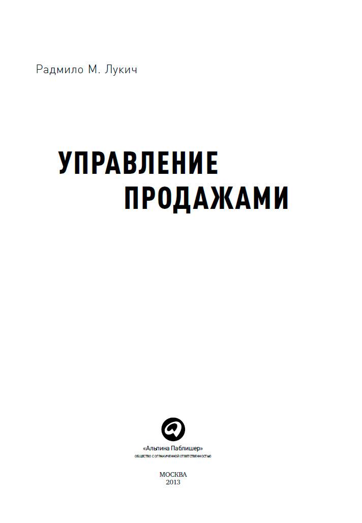Управление продажами / Радмило М. Лукич. — М.: Альпина Паблишер, 2013.