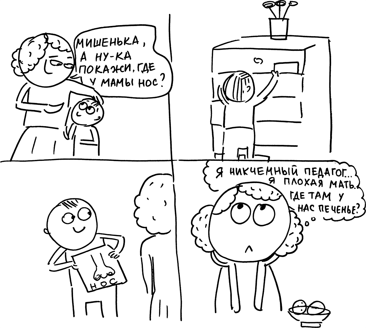 Кто это придумал и зачем? Годовалый ребенок не должен познавать мир по картинкам и читать (с помощью родителей) названия. Он должен знакомиться с частями тела, трогая себя и близких: ковырять в своем носу, хватать за нос папу или даже кусать его нос, дергать за уши.