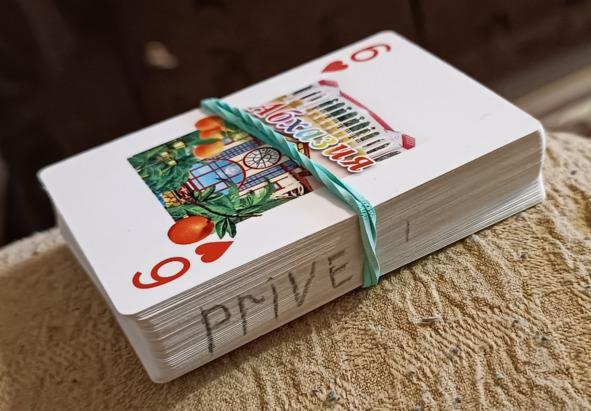 — Запись на боковой стороне колоды карт, расположенных в условленном порядке (рис. 2).