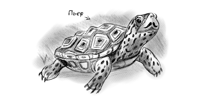 Пьер таращился на меня из своего огромного аквариума. Самец бугорчатой черепахи стоял на задних лапах, а передними скреб по стеклу. Размером он был с мою ладонь, панцирь коричневый, кожа в серых пятнышках.