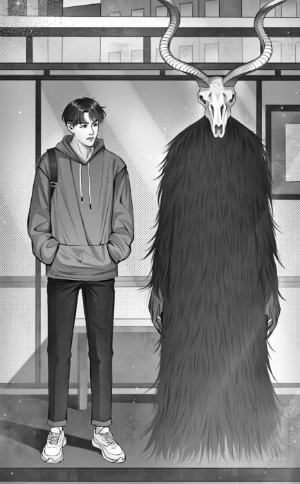 От скуки залез в телефон и стал бездумно скроллить ленту. Краешком глаза все же следил за обстановкой вокруг. Длинная широкая тень вышла вперед, приблизившись прямо-таки вплотную к Саён. Я немного напрягся, поднимая голову. Самое настоящее чудовище с витиеватыми рогами склонилось к ее плечу, обнюхивая баночку с газировкой в руках Саён.