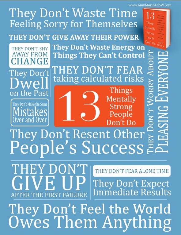 «13 вещей, которые не делают люди, сильные духом. Сохраняйте свои силы, принимайте перемены, стойте лицом к страху и тренируйте мозг для собственного счастья»