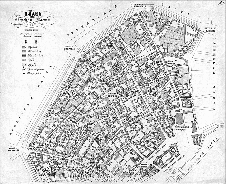 Уже позднее, в середине XVII в., при царе Алексее Михайловиче, Тверская получила более конкретные очертания. Она простиралась уже от Воскресенских ворот Китай-города до Земляного города, и потому ее называли Большой мостовой улицей.