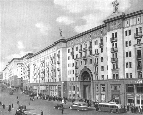 Работы по «выпрямлению» некоторых участков Тверской улицы начались еще в 1923 г. под руководством архитектора А.В. Щусева. В 1930-х гг. этот процесс получил серьезное развитие. После реконструкции улицу выпрямили, проезжую часть расширили. Причем участок до Триумфальной площади сделали шире, а отрезок от Триумфальной до Белорусского вокзала остался узким.