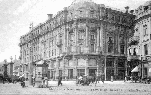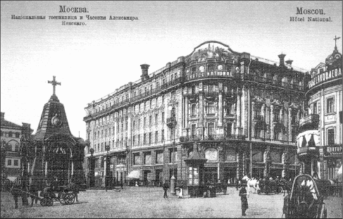 Но не только царские чиновники, а также и их убийцы жили в «Национале», причем нелегально. Террорист Борис Савинков вспоминал, что, приехав в Москву весной 1906 г. с целью подготовки покушения на московского генерал-губернатора Федора Дубасова (его приговорили к смерти за подавление восстания 1905 г.), члены террористической группы поселились как раз в гостинице на Тверской: «Я вернулся в Москву и встретил одобрение этому плану также со стороны всех членов организации. Мы стали готовиться к покушению. Борис Вноровский снял офицерскую форму и поселился по фальшивому паспорту в гостинице «Националь» на Тверской. В среду днем я встретился с ним в «Международном ресторане» на Тверском бульваре. Наше внимание обратили на себя двое молодых людей, прислушивавшихся к нашему разговору. Когда мы вышли на улицу, они пошли следом за нами».