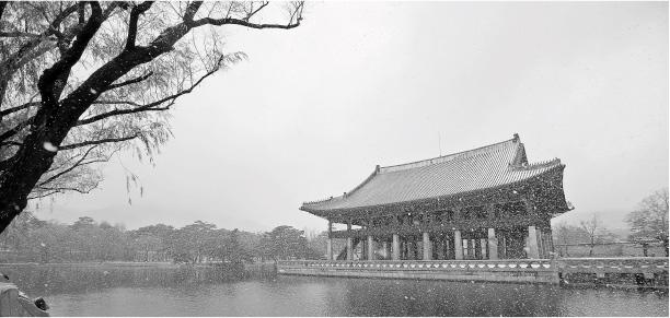 Дворец Кёнбоккун зимой. Во второй половине XIX века именно этот дворец служил главной резиденцией корейских королей