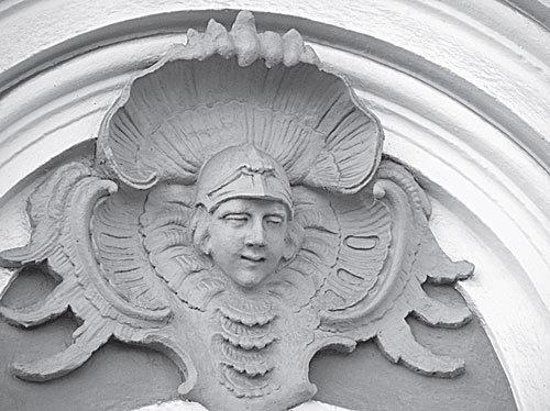 Маскарон с дома № 8 по Невскому проспекту, вероятнее всего, Гера, но точно этого тоже сказать нельзя. Настанет время, когда даже само расположение маскарона, не говоря уже о том, кого он являет, станет частью взаимодействия, частью бессловесной пьесы, разыгрываемой на фасаде дома или даже на фасадах нескольких домов с одной улицы, связанных одной сюжетной линией, как, например, на домах конца XIX – начала ХХ века по Мытнинской улице.