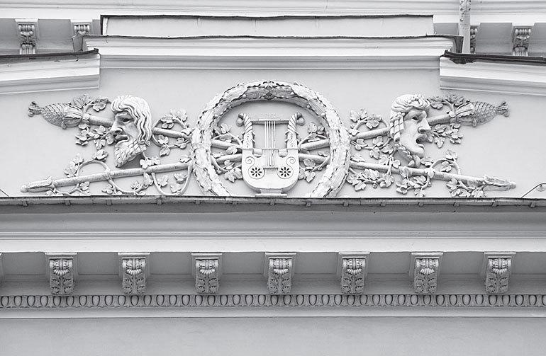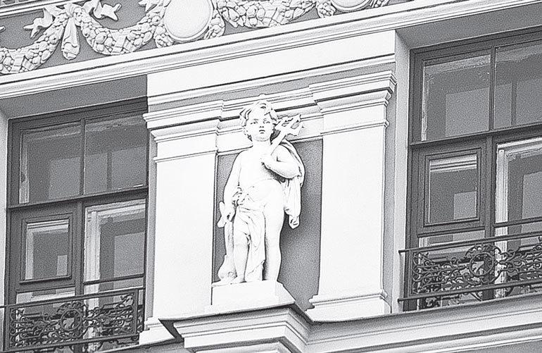 «На формирование петербургской архитектуры в течение всего XVIII века и первой половины XIX века ведущее влияние оказывала культура классицизма и Просвещения с их канонизацией античной мифологии как универсальной системы художественных образов. Более того, формы, восходящие к отличным от античности источникам, до 1830 года, за единичными исключениями, вообще не допускались на фасады городских сооружений. Неудивительно, что в архитектурном декоре столь внушительное место занимают образы греческих богов и чудесных существ. В основном, они связаны с царившим в классицизме культом Разума и персонифицируют светлое, гармоничное („аполлоническое“) начало. Это, разумеется, сам Аполлон, окружавшие его музы, грифон – священное животное бога (пожалуй, самый распространенный мотив в обрамлении домов, превращенный в элемент орнамента)»[30].