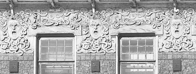Маски, в частности горгульи, располагались над дверьми и окнами, то есть там, где в дом могли проникнуть внешние, злые силы. Разумеется, в те времена, когда здания нашего города украшались маскаронами, этот древний смысл формально уже не играл своей магической роли, но традиция осталась. Более того, она сильно развилась и видоизменилась.