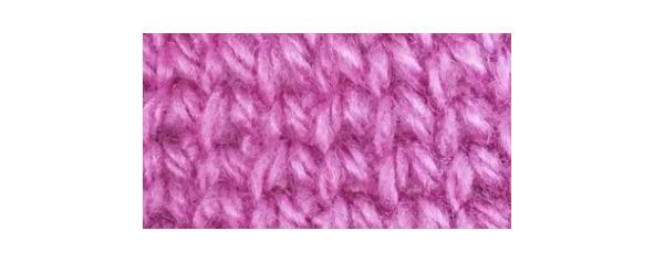 При вязании в раскол полотно напоминает лицевую гладь спицами.
