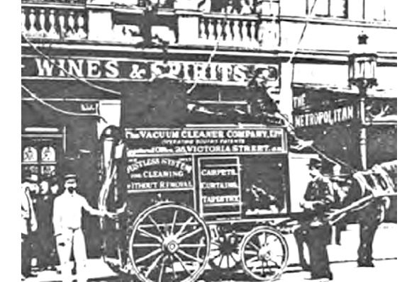 В 1901 году Английский инженер Хуберт Сесил Бут построил 1й пылесос. Он был настолько огромен, что перевозился лошадьми на телеге и работал на бензине. Норм безопасности работы такой техники еще просто не существовало. При уборке он оставался стоять на улице, а шланги протягивали внутрь помещений через двери и окна. Штат обслуживающего персонала пылесоса составлял всего 4 человека.