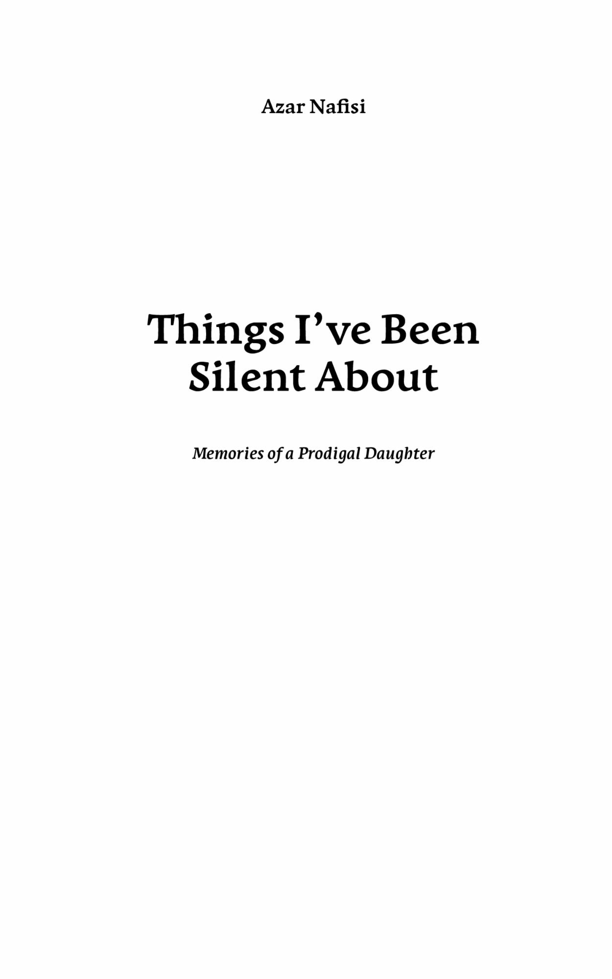 В нашей семье истории любили. Отец оставил после себя полторы тысячи страниц дневников, книгу изданных мемуаров и мемуары неизданные. Последние были куда интереснее. Мать не писала мемуаров, но рассказывала истории из прошлого и заканчивала их словами «но я ничего не сказала, я все время молчала». Она была уверена, что никогда не болтает о своей личной жизни, хотя на самом деле говорила только об этом, хоть и иносказательно. Она бы ни за что не одобрила моего решения написать мемуары, тем более — о семье. А я и не думала, что однажды напишу книгу о своих родителях. В иранской культуре сильна установка никогда не говорить о частной жизни: мы не полощем грязное белье на публике, как сказала бы мама, да и частная жизнь представляется чем-то неинтересным, о чем писать не стоит. Вот назидательные истории — другое дело, как те мемуары, которые в итоге издал мой отец. В них он описал картонную версию себя. Я же больше не верю, что мы можем молчать. Мы никогда на самом деле не молчим. Так или иначе — все равно выражаем случившееся с нами, становясь теми людьми, которыми являемся.