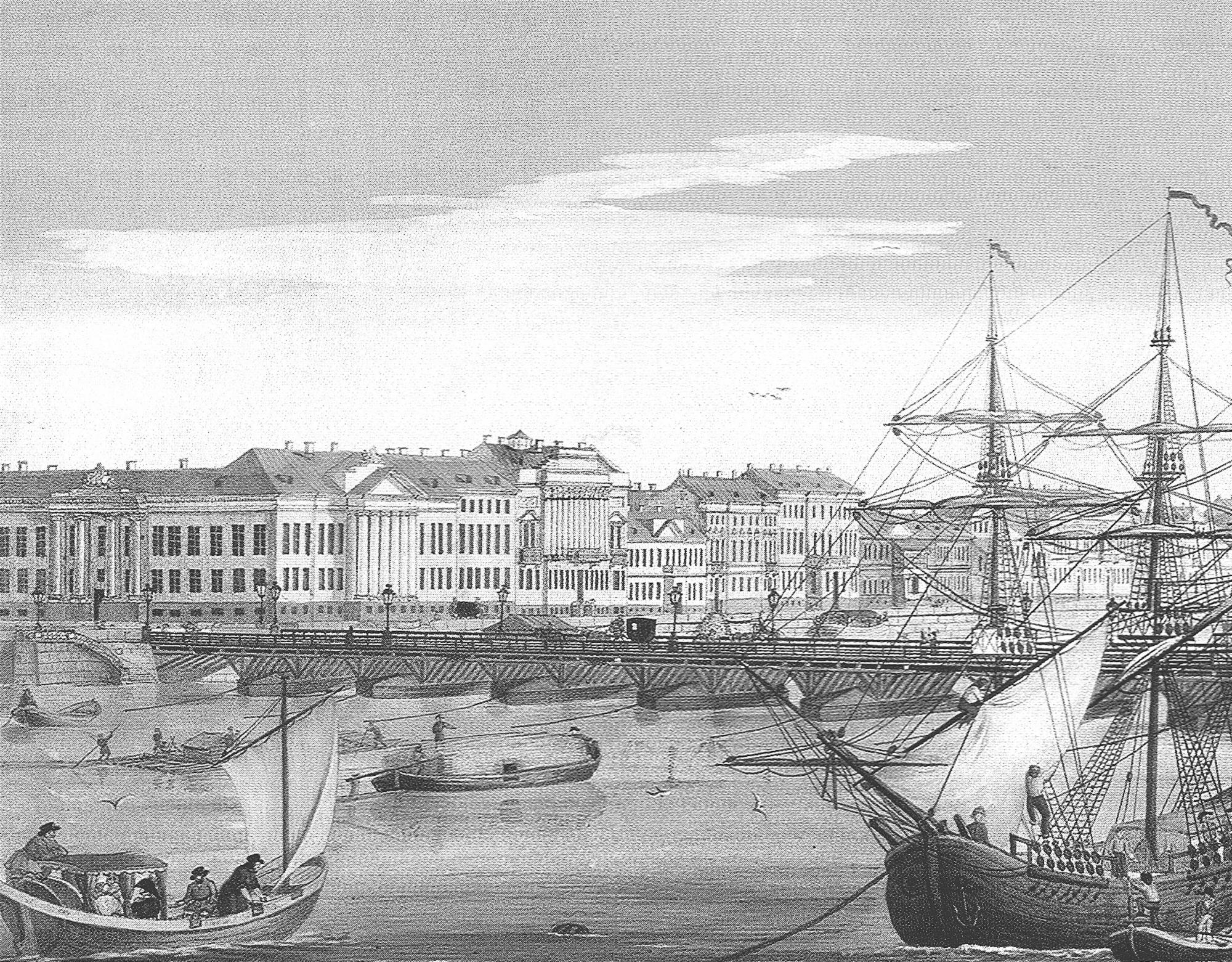 На набережной реки Мойки мы познакомимся с прошлым двух зданий, причем обе постройки хорошо известны всем любителям истории Петербурга. В доме № 12 на Мойке последний год своей жизни провел поэт Александр Сергеевич Пушкин. Отсюда 27 января 1837 г. он уехал на Черную речку, к месту назначенной накануне дуэли. Сейчас в доме открыт Пушкинский музей. Второе здание на набережной реки Мойки ранее занимала известная гостиница «Демут».