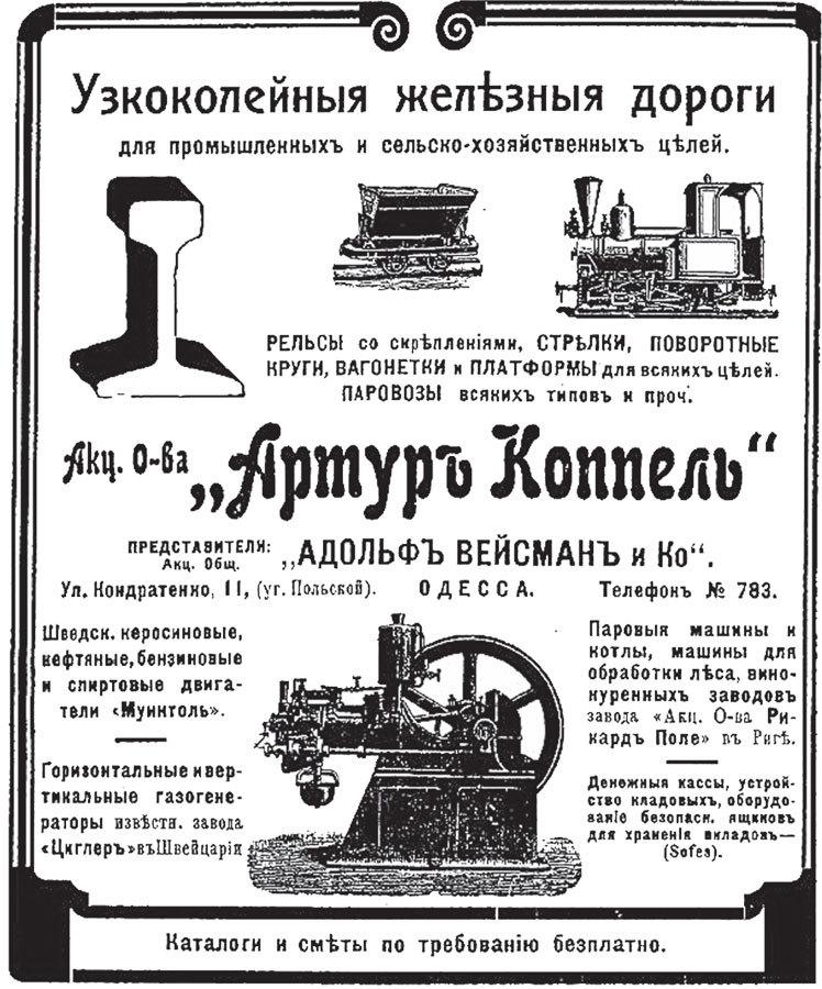 Акционерное общество «Артур Коппель» основано в России в 1897 г. немецким предпринимателем Артуром Коппелем, и занималось оно многими выгодными направлениями: поставляло рельсы, оборудование и паровозы для узкоколейных железных дорог, ввозило в Россию газогенераторы швейцарского завода «Циглер», продавало двигатели и паровые машины различных типов.