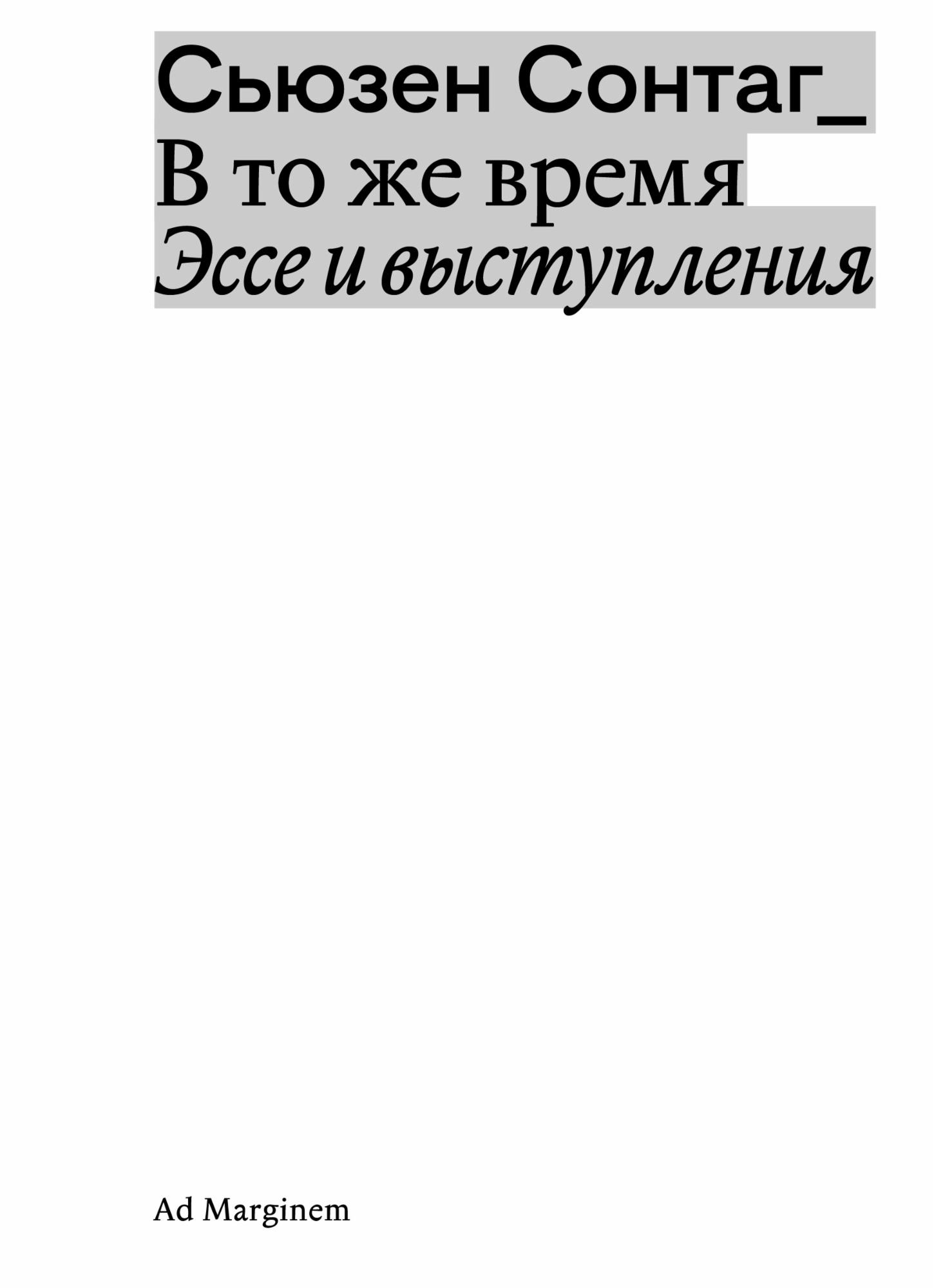 У Сьюзен Сонтаг не было рабочего названия для этого сборника. Мы выбрали название последней произнесенной ею речи, В то же время, как дань полифоническому характеру этой книги, неразрывности литературы и политики, эстетики и этики, внутренней и внешней жизни в ее трудах.