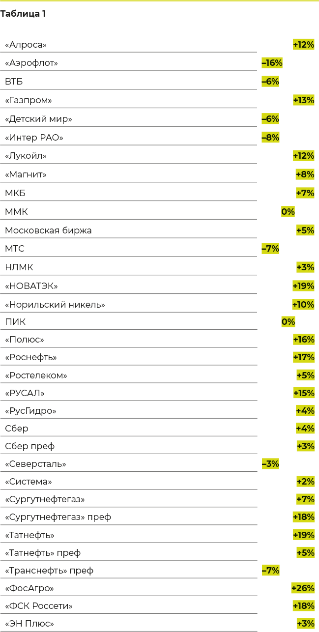 Возобновление торгов акциями началось 24 марта с 33 ПАО из индекса Московской биржи (см. таблицу 1 в сравнении с уровнем закрытия 25 февраля).