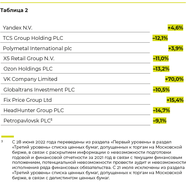 А 29 марта возобновились торги инструментами 10 иностранных холдинговых компаний (ИХК) из индекса MOEX (см. таблицу 2 в сравнении с уровнем закрытия 25 февраля).