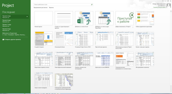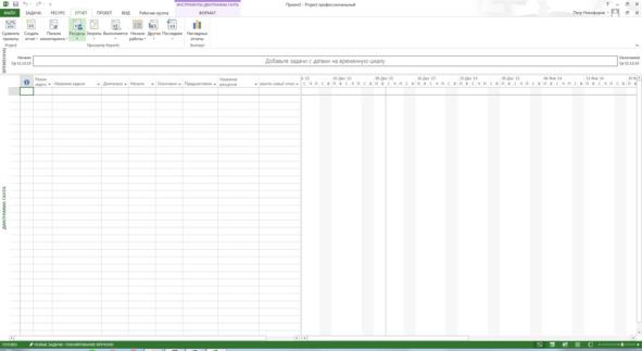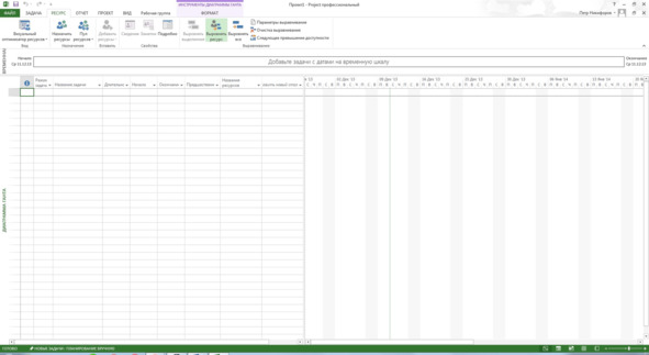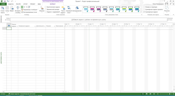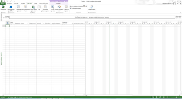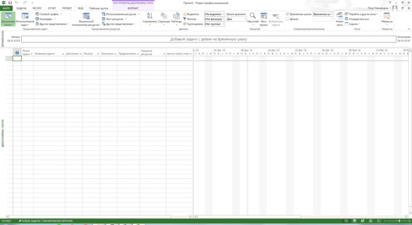 Рассмотрим основные компоненты интерфейса пользователя Microsoft Project Professional для осуществления планирования проектов. Перечисление и описание элементов будем осуществлять слева направо в том порядке в котором они следуют в визуальном интерфейсе.