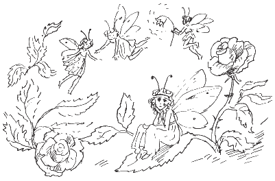 Между тем эльфы шаловливо резвились, порхая над цветами. Они собирали с крыльев бабочек разноцветную пыльцу и пудрили свои носики. Затем со смехом глядели друг на друга и корчили забавные рожицы.