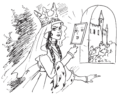 Она увидела, как королева достала из резного ларца круглое зеркальце. Налюбовавшись своей мрачной красотой, она спросила зеркальце: