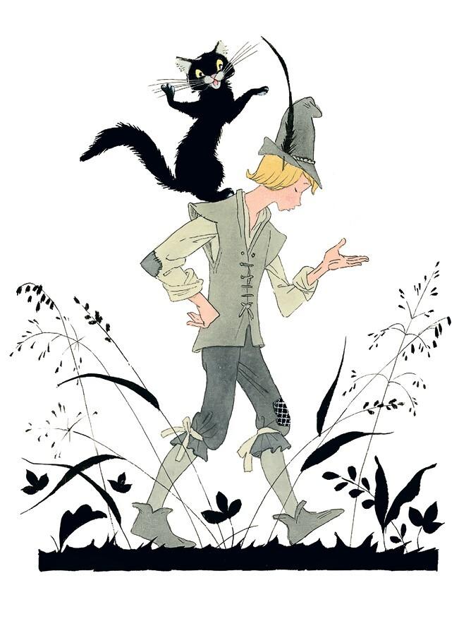 Сыну мельника ничего не оставалось, как поверить коту. К тому же он вспомнил, какие чудеса ловкости и смекалки показывал этот хитрец, когда охотился за мышами и крысами, – то спящим прикинется, то на задних лапах повиснет, то в зерно по самые уши зароется… От такого всего можно ожидать, а других помощников всё равно нет. Так что он выполнил просьбу кота, да ещё сшил ему из старых тряпок накидку и шляпу.
