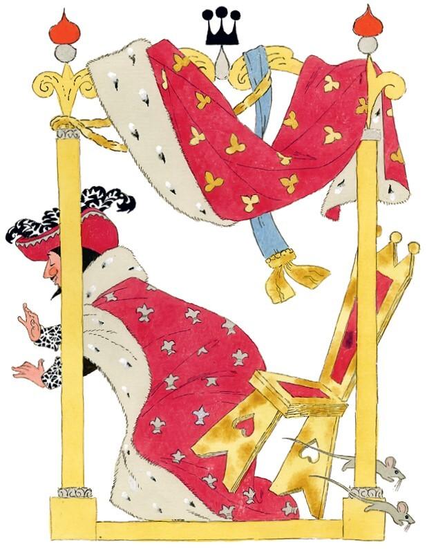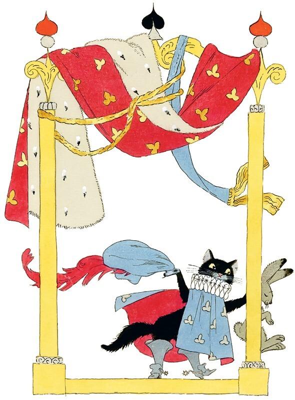 Наш охотник моментально затянул верёвку и, не мешкая, отправился со своей добычей прямиком во дворец. Стражники при виде кота в человеческом наряде до того удивились, что сразу пропустили его в королевские покои.