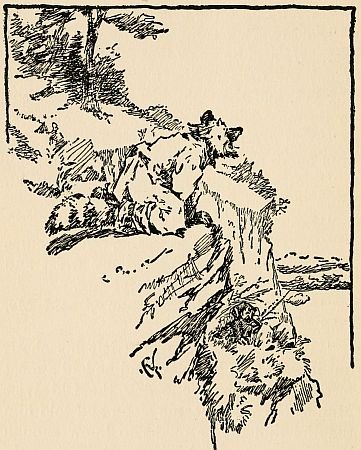 Then he listened again, and all at once he jumped and held his breath, for he heard Mr. 'Possum say something. But Mr. 'Possum was only talking in his sleep, and saying, "I'll take another piece, please," and Mr. Dog knew he was dreaming about the mince pie he'd had for supper.