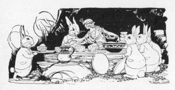 Mr. Fox had hidden himself well under the bushes now. Not even the tip of his nose could be seen and he made his voice sound very weak, as if he were a very small animal.