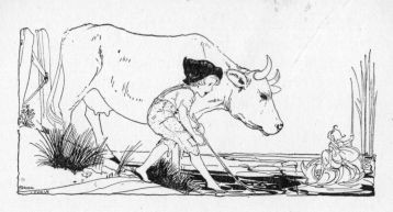 The River Youth, who really was a River God, reached for a horn of white shell which hung from his shoulder by a coral chain, and blew a shrill blast, and the Goblin fell upon his face on the ground.