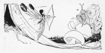 The Goblin watched the Fairy and her lover as they slowly sank from sight, and then he ran off as fast as he could to the dell to tell the Queen what he had seen. "I'll get a red coat, too," he said. "I did not promise not to tell to-night."