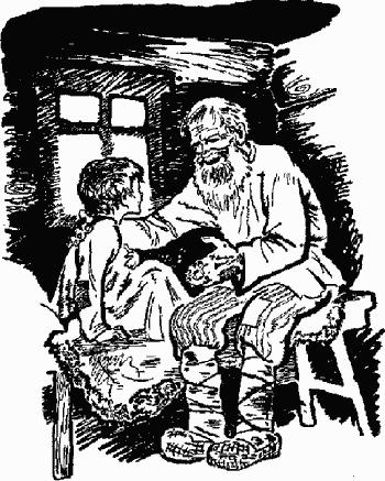 Глухарь был ощипан, а потом попал в горшок. Вольной мальчик с удовольствием поел глухариной похлебки и, засыпая, несколько раз спрашивал старика: