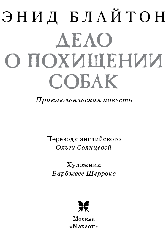 Дело о похищении собак: прикл. повесть / Энид Блайтон; пер. с англ. О. Солнцевой; худож. Барджесс Шеррокс. – М.: Махаон, Азбука-Аттикус, 2019. (Секретная семёрка).