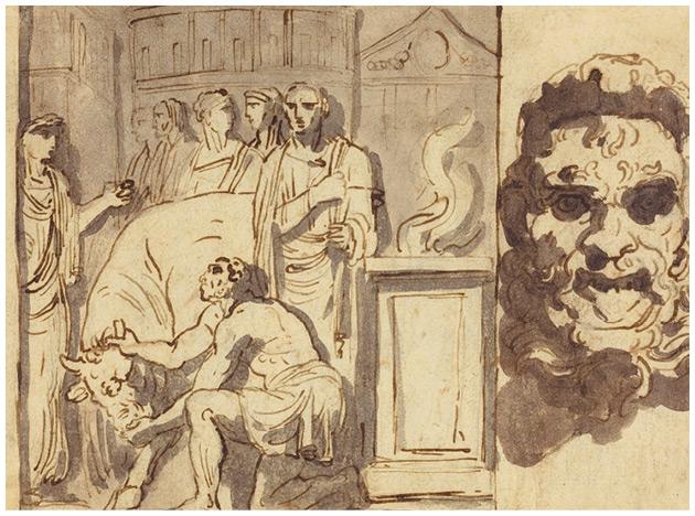 Древнее жертвоприношение и голова сатира. Феличе Джани (1758–1823)