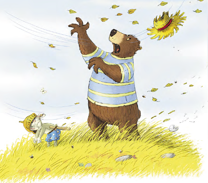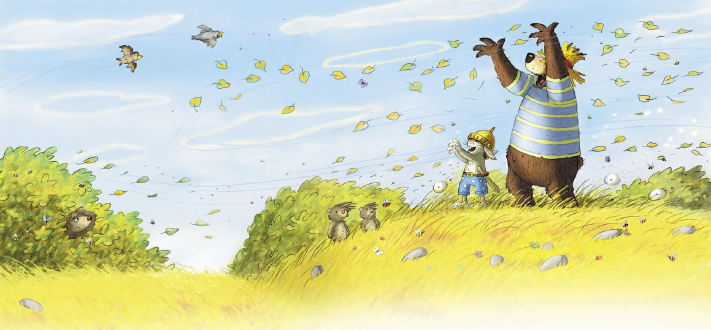 Этот день в Волшебном лесу выдался довольно ветреным. Медведь и Заяц стояли рядом друг с другом на пригорке, увлечённые вновь придуманной игрой. Они подбрасывали в воздух всё, что им попадалось, – листочки, травинки, веточки – и смотрели, как ветер уносит их.