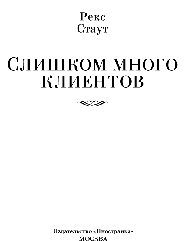 Слишком много клиентов : роман / Рекс Стаут ; пер. с англ. О. Александровой. — М. : Иностранка, Азбука-Аттикус, 2022. — (Иностранная литература. Классика детектива).