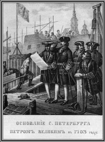 Чтение указа об основании Санкт-Петербурга Петром Великим в 1703 г. Неизвестный мастер. Литография по рисунку П. Иванова.