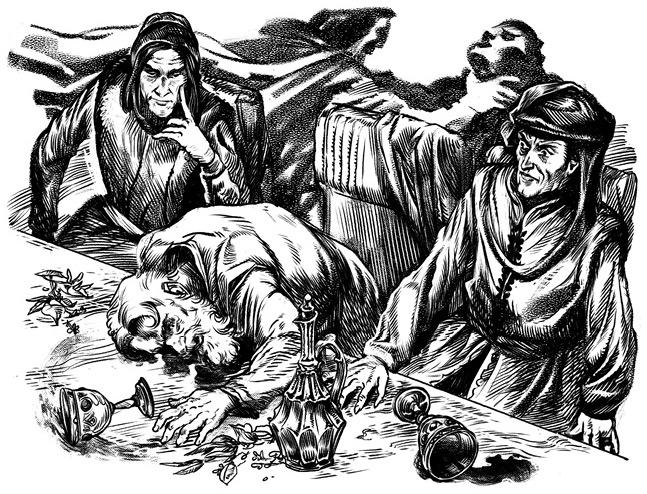 Теорат промолчал и понимающе переглянулся со своим другом Шауни. Они так и не испили из кубков. В это время один из гостей, который расслышал ранее сказанные слова, вдруг поднялся и, подойдя, негромко обратился к Теорату:
