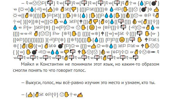 — Дело в том, что мой сын, Огонь S, в ярости из-за того, что его Вымышленную книгу портят Пожиратели. Я не могу позволить ему действовать самому, иначе он убил бы их всех, тем самым нарушив баланс. Вы не можете их убрать подчистую — они должны поддерживать баланс, но вы с Константином можете контролировать их количество. — Такое задание дал Бог Истинного Места. — Они опасны, — продолжил Истинный, — так что вам придется хорошо подготовиться.