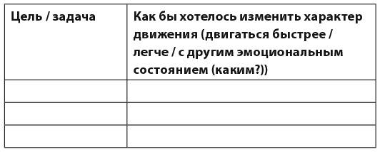- Через описания: какие слова приходят в голову по поводу вашей способности двигаться? Какая она? Как ее можно охарактеризовать?