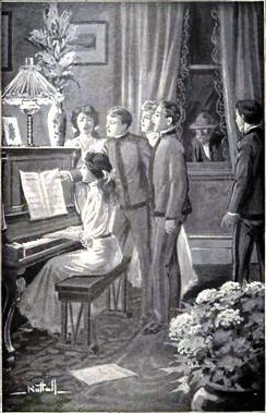 "It will be the best ever!" Tom declared, and they started with much enthusiasm, taking with them "Songbird" Powell, a school chum addicted to the making of doggerel which he called poetry, Fred Garrison, a plucky boy who had stood by them through thick and thin, and Hans Mueller, a German youth who was still struggling with the mysteries of the English tongue. With the boys went an old friend, Mrs. Stanhope, and her sister, Mrs. Laning. With Mrs. Stanhope was her only daughter Dora, whom Dick Rover considered the sweetest girl in the whole world, and Mrs. Laning had with her two daughters, Grace and Nellie, especial friends of Sam and Dick.