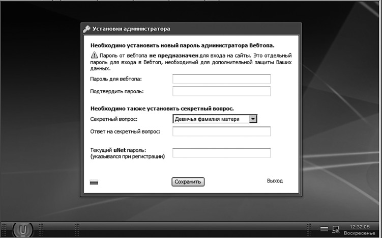 Рис. 1.5. Форма ввода пароля Вебтоп